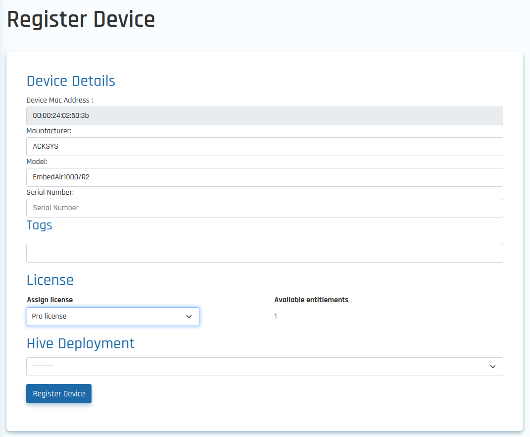 Once you've registered your device, check the Service status. It should display Licensed to confirm that your device is now licensed.