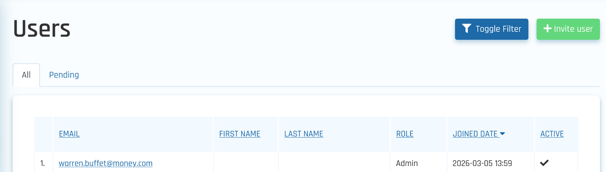 Access to the Users page is exclusively granted to users with an Admin role.